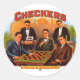 Vintage illustration cigar label product advertisement art featuring friendship with a group of men smokers. Best friends playing a traditional board game while smoking cigars. A fun boys night out! Antique advertising for Checkers Cigars, Mild and Mellow.