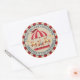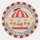 Come one, come all! Thank everyone for coming to the greatest birthday party under the big top with our circus carnival round label template. This circus carnival ticket birthday label features red circus tent background with red and blue carousel on a round label design.