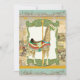 This Baby Shower invitation features a vintage circus poster image in the background along with original watercolor artwork by Audrey Jeanne Roberts to give an antique feel yet it is brand new art! Perfect for the new baby boy, both adorable and yet with the feel of wild jungle animals in bright modern colours welcoming your new little one to the world! The central image is a hand painted Giraffe Carousel Horse Animal with elegant detail in the saddle, and golden pole. It is set in very detailed swirled leaf frame of antiqued lime green, overlaid on an aged, grunged, worn, sanded away vintage circus poster image with grey and deep harvest gold colours. The top border is of original art carousel animals painted by Audrey Jeanne - a white horse, a blue seahorse, the giraffe and a bunny on each end. The background papers on this design are worn, aged, stamped, inked and painted with various shades of cream, tan, brown and aqua blue.