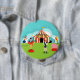 Step right up, folks! Step right up to the amazing Vintage Circus Round Button. Yes, come one, come all! This mid century modern, minimalist art design features a cartoon drawing of a genuine, three-ring circus. Take it all in. On the lush, green grass, you can see a ringmaster wearing a red coat with tails, orange pants, and a black top hat. In one hand he is holding a green megaphone, which allows him to be heard while telling you to step right up! Behind the ringmaster, there is a beautiful woman juggling five balls. Judging from the stars on her navy skirt and orange top, she is a star of the show. To the left of the man with the megaphone, we see a brawny, muscleman. It takes confidence to pull off a navy, one-shouldered, unitard, but Mr. Strong Man does it with style. My goodness! Check out those bulging biceps as his lifts that dumbbell as if it's as light as a feather. His black, handlebar moustache looks as manly as the rest of him. To the left of the body builder, there is a pink, baby elephant standing on a red podium. Don't worry. The juvenile pachyderm appears to be as tame as a kitten. Toward the rear of the scene, we can see a mad-capped man making a real clown of himself. He didn't buy that red and yellow, harlequin style suit off the rack! His blue hat, orange and yellow hair, white face paint, and red nose would make him unrecognizable to his own mother. And this is only the excitement we can see! Who knows what lively antics are playing out in the three big tops that grace the background! Two blue and aqua tents are flanking a giant red and cream striped big top tent with yellow and black letters that spell out, "CIRCUS." A yellow, banner flag is waving from the top of each tent. The sky is shades of aqua, teal, blue and white and is filled with magical, white stars. Just like the circus itself, this design is fun for the whole family and is perfect for children of all ages!