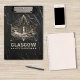 A vintage clipboard, its transparent acrylic surface showcasing the city's majestic City Chambers, whispering tales of centuries past, a tangible link to history waiting to be explored.