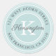 This round return address label features a round frame, a single letter monogram, surname in script, and text in a semicircle on the top and bottom. The entire look is very elegant and classic. Return address labels adds a touch of sophistication to any envelope, as well as being practical! They make a wonderful gift for new home owners and newlyweds as well.