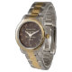 Personalized keepsake watch with classic style, a faux rustic leather-look chocolate brown background with gold-tone lettering and numbers. A nice dress watch for dad or grandpa, include a sentimental message and custom name or title.