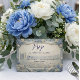 Set a tone of timeless romance for your classic chapel event with these dusty blue and cream details, featuring elegant scenery and vintage charm.This stationery design showcases a digital 3D relief style that creates the striking visual illusion of deeply carved stonework framed by draped fabric garlands. The composition anchors on a scenic landscape featuring a small classical building, a cobblestone path scattered with fallen petals, and rolling hills, all encased within an ornate border of roses and leaves. The typography utilizes a balanced hierarchy of elegant navy blue modern calligraphy paired with clean sans-serif capitals against a soft cream background, mimicking dramatic studio lighting and shadows to enhance the sculptural depth.This is a flat printed image with a faux embossed plaster effect, not actual raised material.