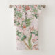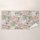 motif vintage tropical avec de belles fleurs historiques, des feuilles de fougères et des perroquets de cockatoo roses sur rose vif.