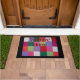 This fun and colourful patchwork doormat has a very traditional knitted appearance, the knitted patchwork image on the original doormat is taken from a photograph of an original hand knitted pattern. The colourful patchwork has been photographed to show it looking natural and "pre loved" you may even see a few pet hairs! and there will be bobbly bits, stray threads and creases, this all makes up the natural look of a much loved traditional piece of knitting. The natural look of the image on this doormat gives it a quirky fun look to welcome you and your guests to your home. This is a customizable doormat, you can personalize it with your own text.