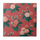 Vintage Colourful Peony Pattern - Maroon Backgroun Tile