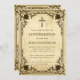 This vintage confirmation invitation has an antique ornate frame with elegant baroque decorations and a background simulating parchment. Above the text there is a religious cross. The text, the cross and the frame are dark brown, almost black, the background resembles old paper. All text can be personalized.