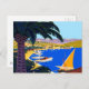 Vintage French and European Travel Advertisements - Beach, village, people, trees, blue sea and sky illustration