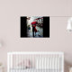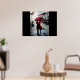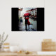 Replica art print of a couple in love holding red umbrella in Mediterranean city with a small Scottish Terrier.