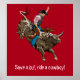 This vintage Americana design features a cowboy riding a bucking bull. Reminiscent of old western decor, this revival works well in traditional settings, cabins, even modern design. Change the background color and message to suit.