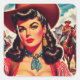 Vintage Cowgirl Pin-up Square Sticker