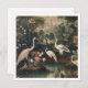 vintage botanical painting of cranes standing in a lake surrounded by beautiful exotic flowers with a palace in the background