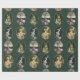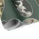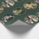 This wrapping paper is illustrated with victorian animal characters set in ovals on a green background.