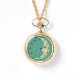 Features a vintage illustration of a crescent moon with a face. Done in a light yellow and set against a turquoise background. A charming vintage design. Numbers are optional.