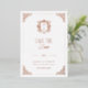 Announce your celebration with this vintage crest monogram save the date, featuring luxurious rose gold foil accents and refined formal typography. Perfect for elegant weddings, black-tie events, or romantic destination celebrations, this design combines timeless sophistication with a modern metallic touch. Ideal for couples who love classic details, warm tones, and luxury paper finishes.