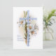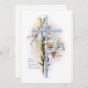 Elegant silver cross and white Easter lilies with Glad Easter Greetings old English style silver typography.