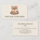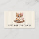 Elevate your bakery's branding with this charming and vintage-inspired cupcake business card. The front features an illustration of a delightful cupcake tier stand with beautifully decorated treats, exuding a sense of nostalgia and sweetness. The soft striped background in neutral tones adds a touch of sophistication, making it perfect for a boutique bakery or a home-based baking business.