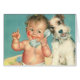 Vintage Cute Baby Talking on Phone Puppy Dog