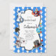 You will love this blue and white chequered plaid background with tag. Character teapots and playing cards of spade, clubs, hearts and diamonds, rabbit, magic hat, and dress. Great for a birthday party!