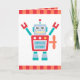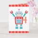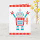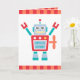 Wish the little boy a happy birthday with this cute greeting card! It features a happy red and blue robot toy that has a key winder on its back. The robot also has a screen on its body to personalise message for the birthday boy! Great for birthday boys who love the science fiction genre and robot toys! Vintage colour hues of yellow, orange, blue, red and grey with gears and cogwheels and stripes for decorations.