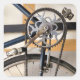 A photographic design of the parts of a vintage bike showing pedals and chain.