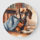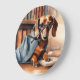 Vintage Dachshund in the Old Library Large Clock