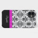 This case features vintage Victorian era black damask over a white background, with a personalized solid black bottom. The two areas are separated by a bright hot pink "ribbon". Easy to customize, bright and dramatic! If you'd like to change the font, colour, size or location of the text, you may do so by choosing "Customize it". **Please note -- the image is printed on the case, which contains no actual fabric or ribbon.** Many more case designs and styles are available at Mega Case.