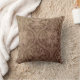 Vintage Damask Style throw pillow. Antique Brown background with light pink and yellow damask pattern.
