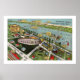 Illustration vintage de Daytona Beach reproduite sous forme d'affiche 16x24. Nous l'avons dimensionné avec une bordure pour l'adapter à un cadre standard. Il est également disponible dans une plus grande taille.