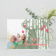 Green and Red Deer and Birch Tree Christmas Photo Card. Red Christmas Ornaments Hanging from Deer Antlers with your Family or Couples Holiday Photo