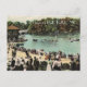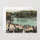 Vintage postcard showing Delaware Park in Buffalo, New York in 1900 complete with bandstand, people strolling along the lake shore, and boaters enjoying the summer day.
