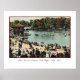 Vintage postcard showing Delaware Park in Buffalo, New York in 1900 complete with bandstand, people strolling along the lake shore, and boaters enjoying the summer day. Reprinted on this poster with framing options available.