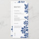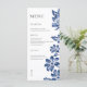 Elevate your wedding table with this elegant blue floral frame menu. Delicate blue botanical illustrations create a graceful border that beautifully showcases your menu details, combining sophistication with a romantic touch. Perfect for formal dinners, garden weddings, or modern celebrations, this menu coordinates seamlessly with matching invitations, save-the-dates, and enclosure cards, creating a cohesive and refined wedding stationery suite.