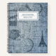 This stylish notebook features a vintage denim design, including drawings of the Eiffel Tower, a pocket watch, typewriter, postage stamp, and more. Easy to personalize for any use - a gift, back to school, college notebook, kids, teens, moms, etc! The back contains the same background design as the front.