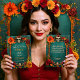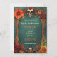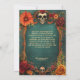 The combination of the textured bottle green background, the colourful floral border, and the carefully placed sugar skulls creates a rich and inviting colour palette, perfectly reflecting the joyous energy of Día de Muertos. The customizable text allows you to include all event details and a personal message, tailored to your unique celebration.
