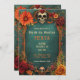 At the bottom of the invitation, a smaller, equally detailed sugar skull complements the design. This lower sugar skull mirrors the top, reinforcing the theme and adding balance to the overall composition.