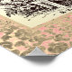 Pretty square poster that features an antique illustration of a domed beehive on a pedestal with a distressed pink and gold damask background