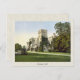Postcard with a digitally cleaned and enhanced vintage illustration of Downton Hall, near Ludlow, Shropshire, England by Francis Orpen Morris from 1870, pictures a gothic revival style house that resembles a medieval castle.