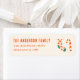 As you see the design features a unique red and cream hand made and drawn Christmas candy and socks With red hand written typography of your family . And your handwritten return address. That is easily customizable. All on cream background.