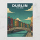 Capture the charm of the City with this beautiful Dublin Travel Postcard. This vintage-style illustration features the historic Ha'penny Bridge arching over the River Liffey, framed by the famously colorful buildings and cozy pubs that line the city's quays.
