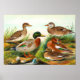 Beautiful Hand-coloured lithographed plate of group of ducks resting at the pond. Digitally enhanced to bring back its vibrant colours. Date printed 1900s.