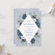 A chic vintage invitation displaying your wedding details inside a white diamond element surrounded by lush flowers in shades of blue, navy and white, all on a warm dusty blue watercolor background. The card reverses to a small floral arrangement in the centre. This invitation is part of a beautiful matching wedding suite that can be fully personalized.