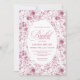 Invite guests to celebrate with this elegant bridal shower invitation featuring classic French toile de Jouy roses. Soft dusty pink, blush, and pink and white floral patterns create a romantic vintage look, beautifully accented with refined rose gold details. Professionally printed by Zazzle, this design delivers crisp text, rich color, and a smooth, premium finish that highlights every rose and floral detail. Perfect for a timeless, floral, or classic bridal shower theme, this invitation is fully customizable and arrives polished, photo-ready, and ready to impress your guests.