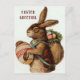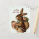 Vintage Easter postcard featuring Easter Bunny with eggs. Customize with your own greetings and message.