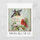 All purpose postcard for any family-oriented event or to just send a friendly note. Families will love receiving this vintage Victorian Easter greetings card which feature a rustic fence background with two colourful blue and red birds in the foreground. The design evokes a past era with vintage lettering saying, "Easter Greetings." Bright and cheerful, with white and pink flowers and lovely scrollwork, this gift will always be appreciated.