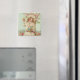 This cute magnet features a vintage image of a young girl, holding an Easter basket and a baby chick.