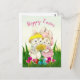This spring holiday postcard features cute Easter bunnies in a grass garden with pink tulips, yellow daffodils, and Easter eggs. I added a variety of overlays to make this Easter postcard unique. Unlike other postcards with the same vintage design, this one has a spring season landscape. Personalize this postcard with your own words or buy as shown with Happy Easter greeting.