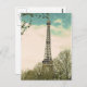 Here is a postcard of the famous Eiffel Tower in a vintage look. The postcard features the iconic Tower, trees and great sky.