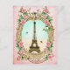 Vintage Eiffel tower with Pink Roses Postcard